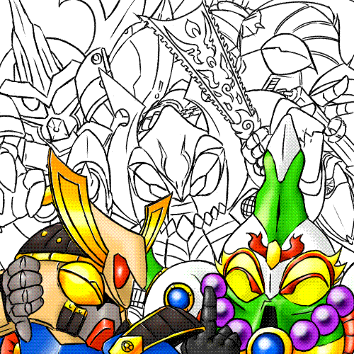 で、先日輪入道彩色が終わったので。相変わらずクリックで拡大のgif版。↓ 鋼殻彩色!! 絵に描いてある五人の中だと、一人だけ攻略本の絵もゲームのグラフィックだけなんだよなー。隊長や一部足軽はきちんとイラストなのに。 おかげで輪入道と色の塗り方が若干違う気がする… (↑攻略本の絵に塗型合わせようとしてるせい) もしかしたら全員塗り終わった後鋼殻だけ修正かな… …鋼殻のさぁ、あのまつ毛みたいな赤と黄色のばつばつが好きなんだよ。 あとこの絵じゃ描けなかったけど肩鎧の後ろから出てるっぽいびらびらとか。 それとゲーム内の武者図鑑の各種解説のテンションの高さ(?)とか。 誰か同士いないかなー… …いや、覇道闇軍団の隊長・副官全員好きなんだけどね。 PR